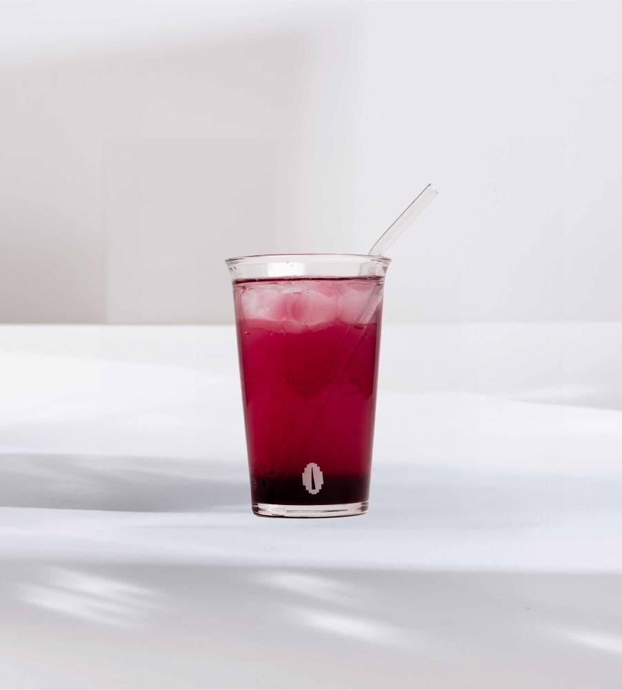 Modern glass cup with a sleek and elegant design easy to hold and use, equipped with a straw for added convenience.